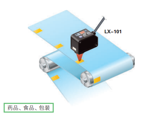 利用紅色、綠色、藍(lán)色3色LED一體化的投光元 件及松下神視獨(dú)創(chuàng)的共軸反射光學(xué)系統(tǒng),可穩(wěn) 定檢測不同顏色的標(biāo)記。