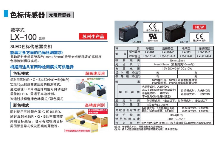 數字式色標傳感器[放大器內置] LX-100系列 LX-101(LX-101-P)