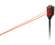 邊觀察映照在光軸調整屏上的紅色光點,邊結合實物進行光軸調節,可瞬間確認的受光位置。右圖表示對自動鉛筆筆芯(檢測物體)進行目視調節的示例。