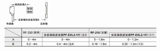 (注1) :裝時請使傳感器與反射鏡之間保持0.16m以上的距離。詳情請參照種類。