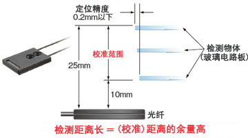 因是檢測距離0~43mm,校準范圍10~25mm的長距離型,校準范圍大,可對應大型玻璃電路板的校準。(在STD模式下)