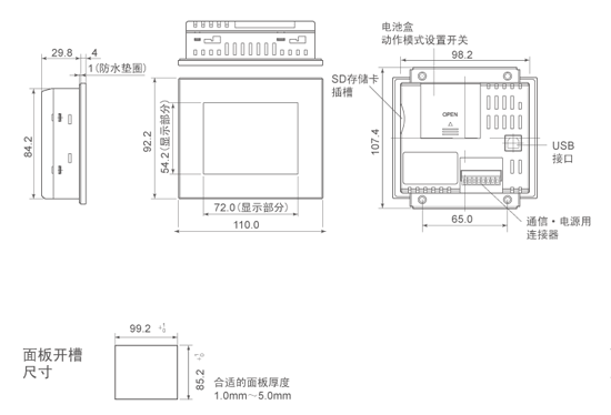 IP65(在初始狀態(tài)下)操作盤正面防塵、防滴漏(在盤接觸面上使用橡膠墊圈) ※再次安裝時(shí)請(qǐng)更換防水墊圈 |