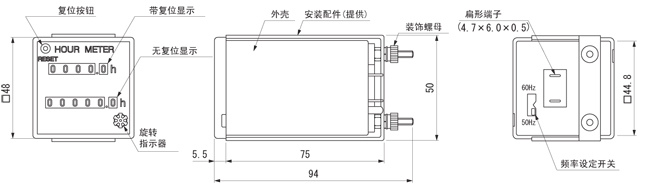 50Hz、60 Hz共用(控制桿切換式),在1臺機器上可完成累積時間和一定期間的時間測定。符合CE標識要求。