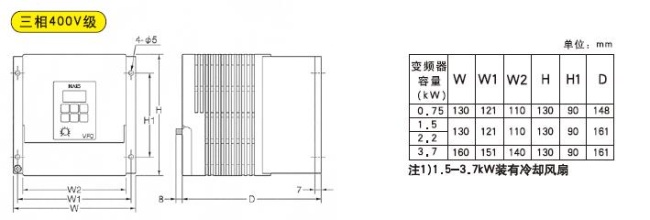 ·200V系列型:0.4-1.5kW電阻內(nèi)藏(0.2kW電路沒有制動(dòng)電路和制動(dòng)電阻;0.4kW是外部設(shè)置的同包裝電阻)