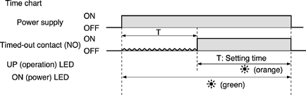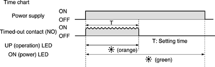 When power is turned on, the output contact performs the on operation at the same time power turns on, only for the set time. |