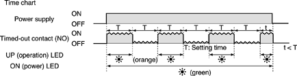 When the power is turned on, the output contacts repeatedly operate at the set time. The output contact begins from the off state. |