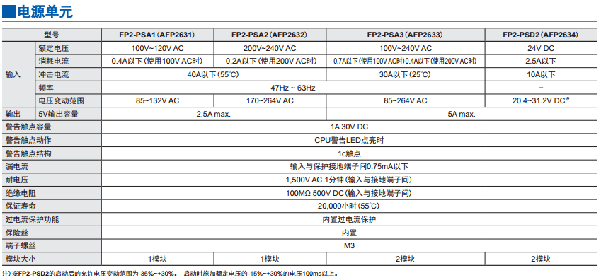 FP2SH系列擴(kuò)展模塊 電源單元-FP2-PSA2(AFP2632)