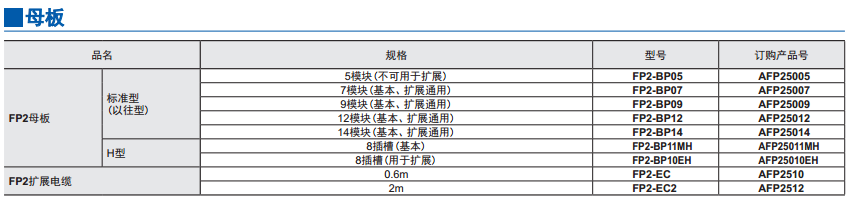 | FP2母板 | 標準型 | 5模塊(擴展使用不可) | FP2-BP05 | AFP25005 |