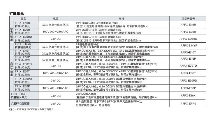 24V DC | 24V DC輸入16點、0.5A/24V DC晶體管輸出14點(PNP) ※2 | AFPX-E30PD |