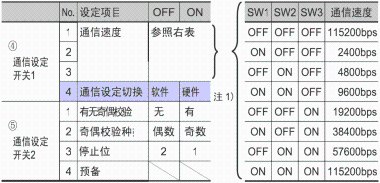 ※1 僅在(4)通信設定開關1的No.4為ON(硬件)時,可通過DIP SW設定通信。