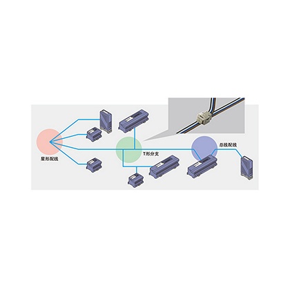 采用節省施工的壓接式連接器,在任何位置都可形成T形分支,且沒有干線、支線的區別以及分支次數的限制,可以采用搭接配線(總線配線)以及多分支配線(星形配線)。