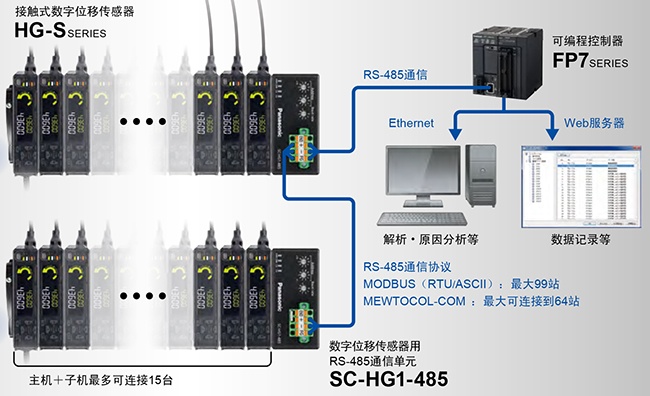 上位(RS-485) | MODBUS(RTU/ASCII)設定時站數(shù):99臺以下 / MEWTOCOL-COM設定時站數(shù):64臺以下 | ||||