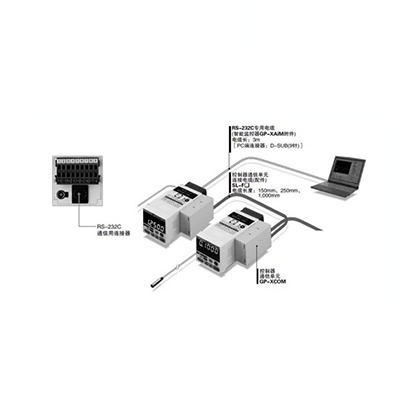 控制器通信單元GP-XCOM(配件)最多可連接8個控制器,且只需通過一根RS-232C電纜便可把每個控制器的設定/測量數據讀取到PC上。
