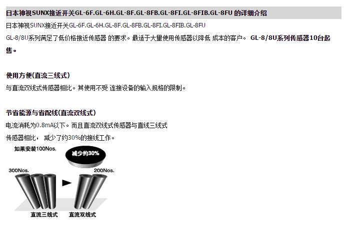 神視(SUNX)是世界上最早開發光電傳感器的公司1971年,帶有LED(發光二極管)反射型光電傳感器問世之后,運用高度的傳感器技術、生產技術,制作出高性能高品質的產品,SUNX集團著力于開發和制造傳感器、光幕傳感器、激光刻印機、靜電消除器、工業用內視鏡。而日本SUNX作為通用傳感器的生產工廠,在面對國內銷售的同時,還對應著全球化的。日本神視SUNX產品廣泛用于建筑、通信、電力、電子、化工、機械等領域,日本神視SUNX產品通過了認證,易電日本神視SUNX產品是生產企業最好的配套品牌之一。SUNX傳感器,包括有光電,光纖,壓力,接近,色標,區域光幕,安全光幕,激光,靜電消除器等......。