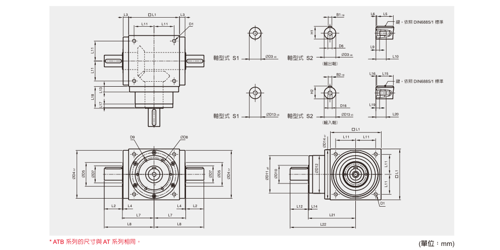 一體化不銹鋼本體確保最大剛性與耐蝕性,多重精密加工表面易于組裝。采用頂級蝸線傘齒輪的設計軟體。多重不銹鋼輸出入力軸的設計。高精密研磨的蝸線傘齒輪組結合最佳化設計的齒輪組。高扭矩背隙的精簡結構設計。專利的油封設計。