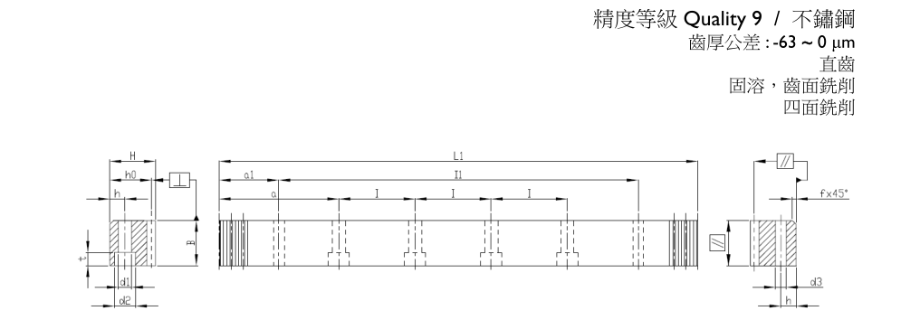APEX臺灣精銳直齒齒排 精度等級 Quality 9 / 不銹鋼 (模數(shù)M:1、1.5、1.75、2、3、3.183、4、4.5、5、6 )