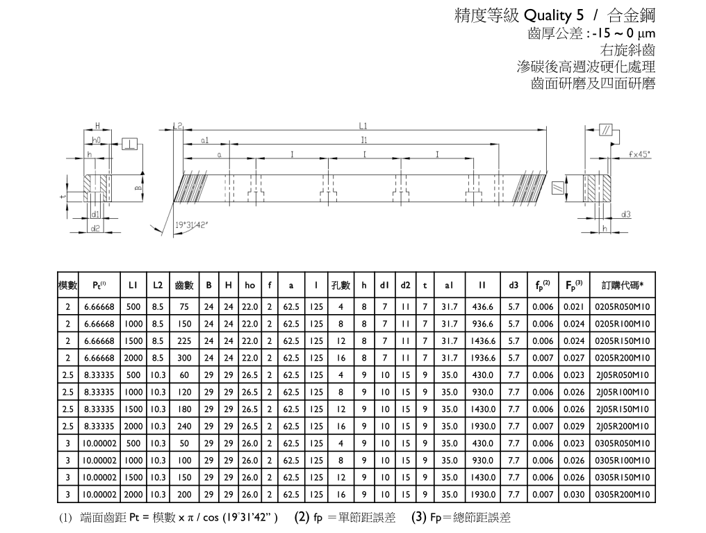 APEX臺(tái)灣精銳斜齒齒排 精度等級(jí) Quality 5 / 合金鋼 (模數(shù)M:2、2.5、3)