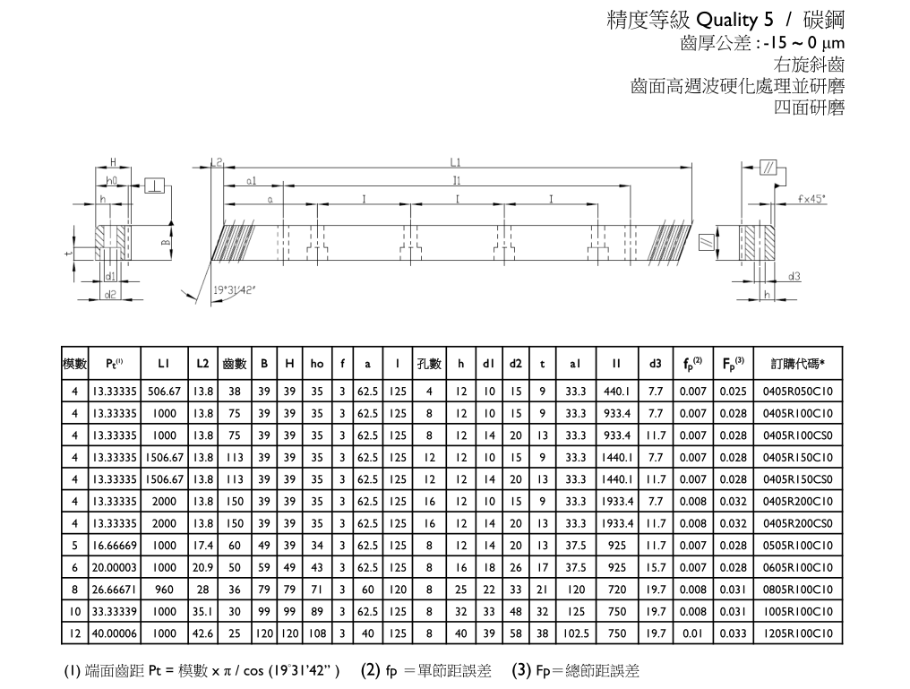 APEX臺灣精銳斜齒齒排 精度等級 Quality 5 / 碳鋼 (模數M:4、5、6、8、10、12 )
