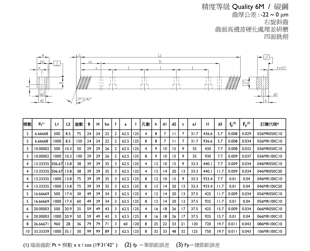 APEX臺灣精銳斜齒齒排 精度等級 Quality 6M / 碳鋼 (模數M:2、3、4、5、6、8、10 )