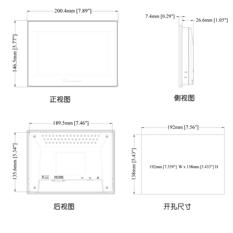 寬輸入電壓范圍10.5~28VDC, 7" 800x480 TFT LCD, LED 背光燈, 無(wú)風(fēng)扇冷卻系統(tǒng)。