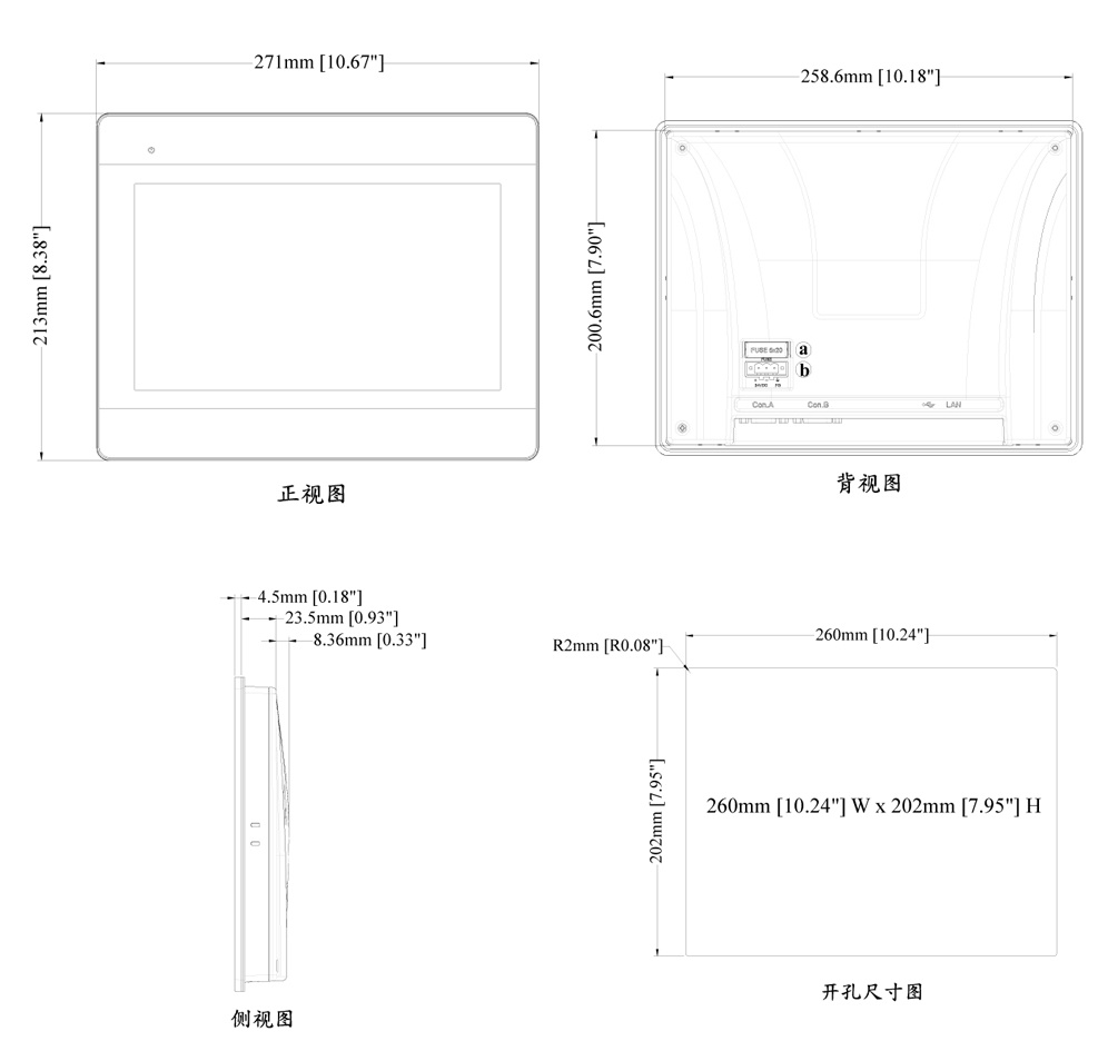 - 10.1" 1024 x 600 TFT LCD, LED背光燈