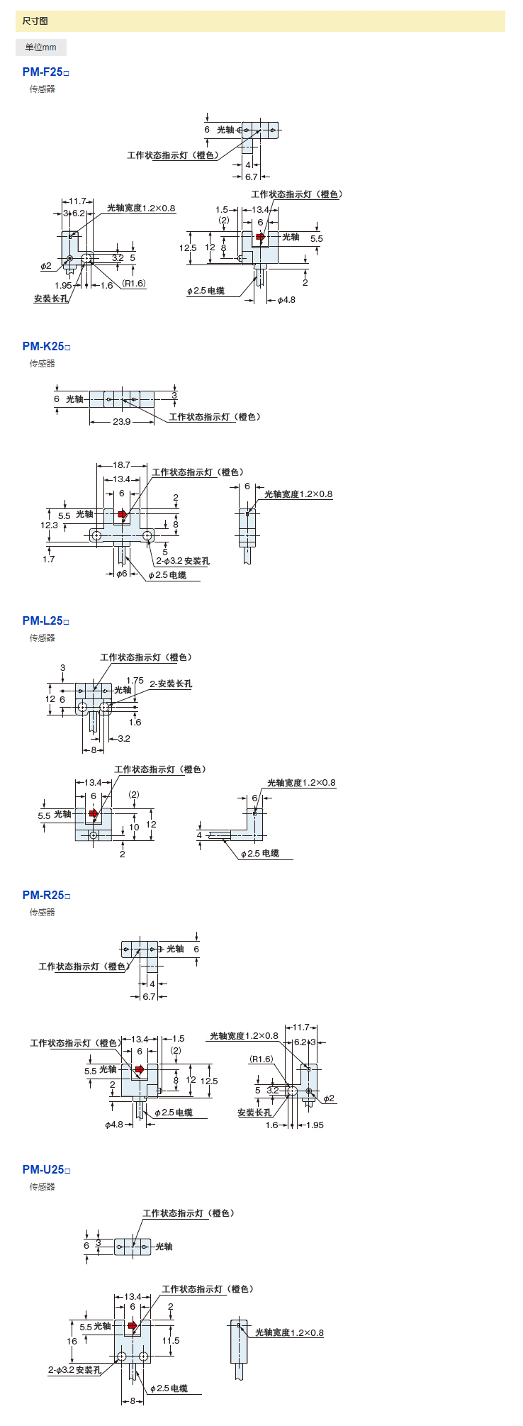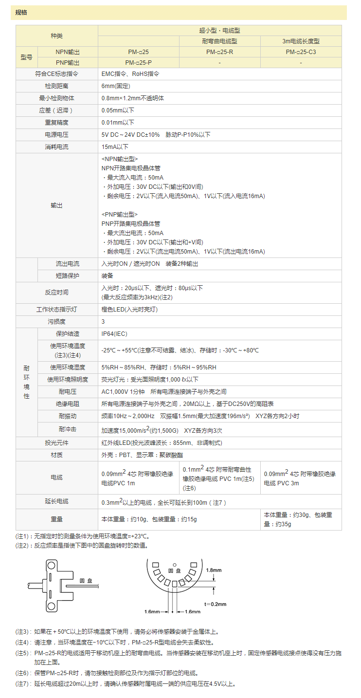 放大器內(nèi)置?U型微型光電傳感器[超小型?電纜型] PM-25系列