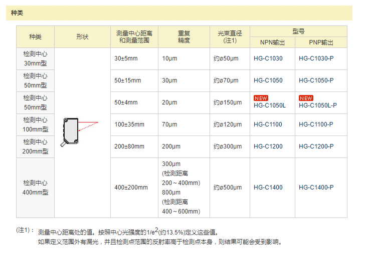 CMOS型微型激光位移傳感器HG-C系列 HG-C1050L(HG-C1050L-P)