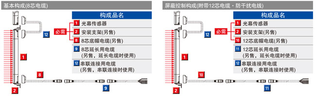 光幕傳感器連接電纜: SFB-CB□-EX 延長(zhǎng)電纜: SFB-CCJ10□ |