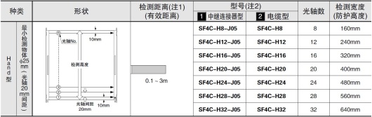 (注10):使用屏蔽燈時,請將電纜全長控制在30.5m以下(投光器和受光器各1根)。