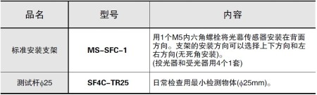 | 附件 | MS-SFC-1(標準安裝支架):1套、SF4C-TR25(測試桿):1根 | ||