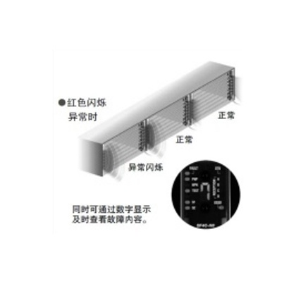 光幕傳感器的光軸分成4等分顯示,入光位置一目了然。作為光軸的對齊基準,當?shù)锥?或頂端)的光軸對齊時,LED呈紅色閃爍。此后,光軸對齊的部分依次亮紅燈,如果所有光軸都入光則所有的LED均亮綠燈。再加上入光量指示燈(STB),可確保設(shè)置更加穩(wěn)定。