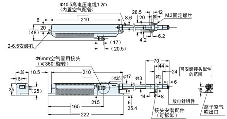 (注2): 除電距離50mm、產品中央、放電頻率50Hz、無空氣供給條件下的典型示例。